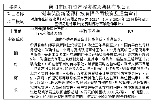 湖南弘能新能源科技有限公司投資及運(yùn)營(yíng)審計(jì)項(xiàng)目抽取結(jié)果公示